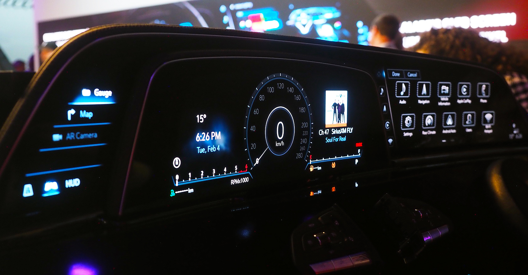 A hatalmas szabadidőjármű másik különlegessége a 38 colos (!) képátlójú, 4K felbontású, kristálytiszta, energiatakarékos OLED kijelző, amelyen egyszerre három információs mezőben jeleníthetjük meg a kívánt tartalmakat. Ráadásul az elektronika ma már a legegyszerűbb emberi cselekvésbe is besegít, legyen szó a kiterjesztett valóságú navigációs rendszerről, amely mintha közvetlenül az útra vetítené ki a követendő irányt, vagy az utastéren belüli beszélgetést támogató mikrofon- és hangszórórendszerről.