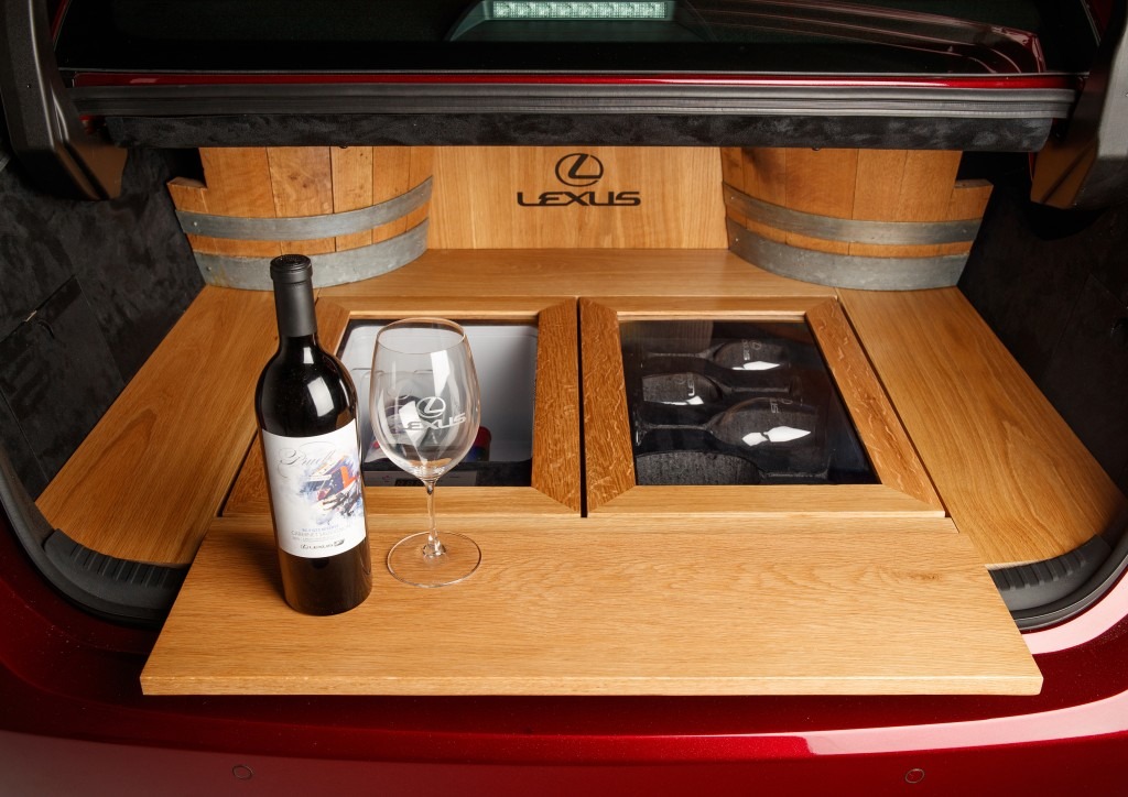 Borhűtő, pohártartó és egyedi tölgyfa padlóburkolat. Művészi tuningolás egy Lexus-ban.
