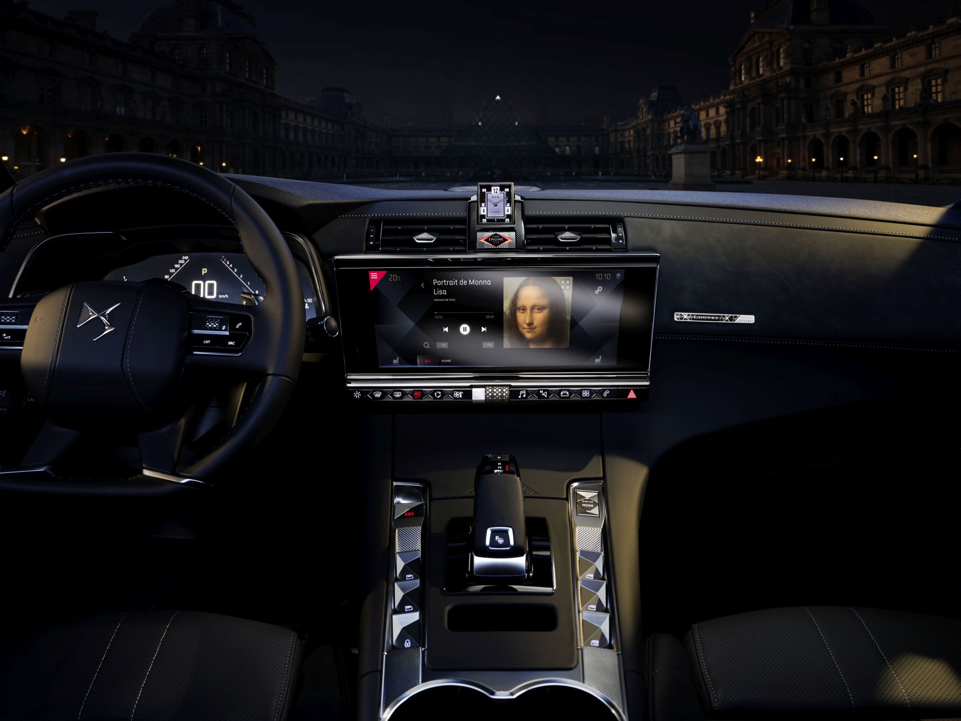 A belső térben, a szellőzőkön és a műszerfalon 3D nyomtatásban, a középső rakodórekesz fedélének nappabőr borításán pedig dombornyomással – finom utalásként – jelenik meg az Ieoh Ming Pei által tervezett üvegpiramis motívuma. A francia szakértelmet megtestesítő modell az új technikákat, mint a 3D nyomtatás vagy a lézergravírozás olyan nemes anyagokkal társítja, mint az óraszíj mintázatú, bazaltfekete nappabőr.