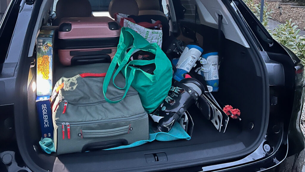 Ez azt jelentette, hogy a lécek elhelyezéséhez le kellett döntenünk a jobb hátsó ülést (és természetesen a leghátsó plusz két pótülést is). A „cuccokat” természetesen gyorsan elnyelte a kettő plusz egy ledöntött ülés kínálta kapacitás, a csomagtér és az utastér egybefolyt, a két gyereknek pedig osztoznia kellett a megmaradt helyen. Gyerekeknek ez még bőven a kényelmi zónán belül volt, de őszinték leszünk: két felnőtt hátul, a lécek mellett már igencsak szűkösen érezte volna magát. Ez egy olyan részlet, amin a jövőben érdemes lenne csiszolni a mérnököknek, hogy a családi logisztika még zökkenőmentesebb legyen.